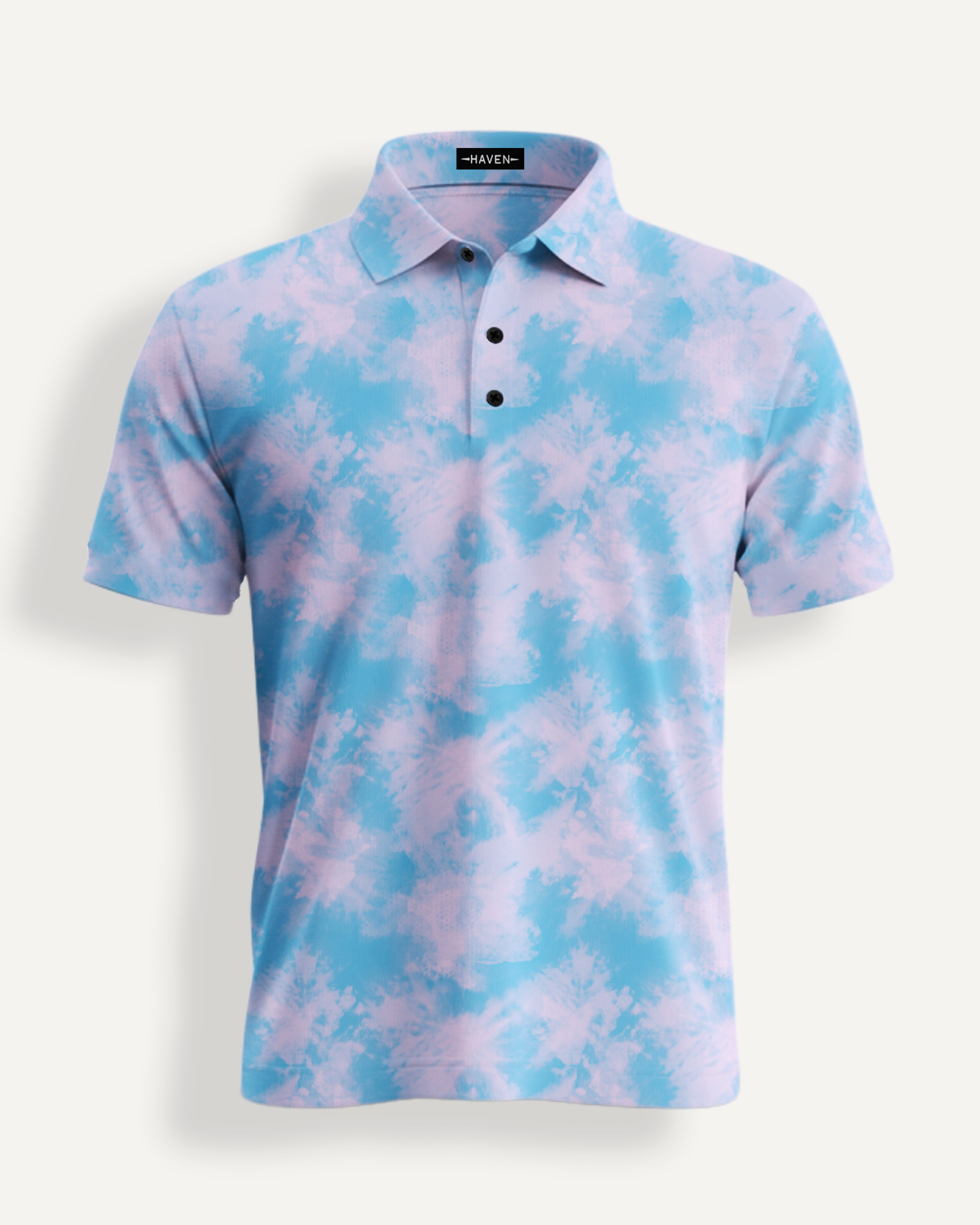 Haven Golf moisture wicking polos are the best fitting polos in the game. With a light weight four-way stretch and stiff collar, you can take this polo from the office to the course // and don't forget the 19th hole. The Cotton Candy Skies men’s performance polo can be worn tucked or untucked - whether you're at the local muni, or visiting your buddies dads country club, you're sure to fit in and stand out.