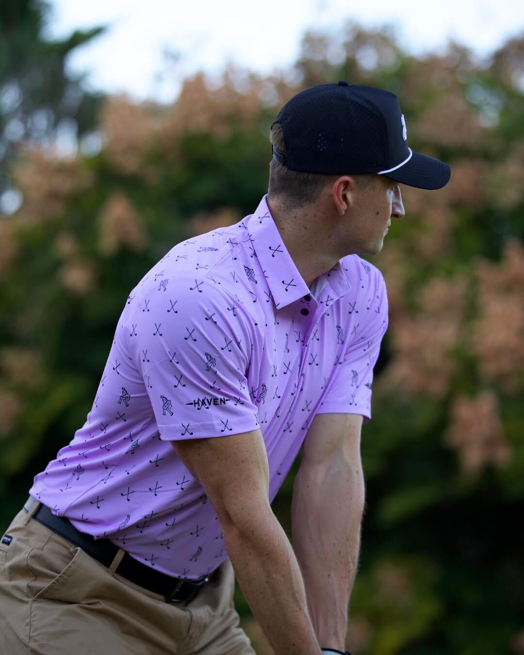 We’re confident our polos will be the first one you grab when you wake up for that early morning golf round before heading to the bars to catch the game. Complete with the Haven Golf wordmark on the sleeve and the Haven Golf logo on the back. Soft, stretchy, and stylish - what more can you ask for from a performance polo?