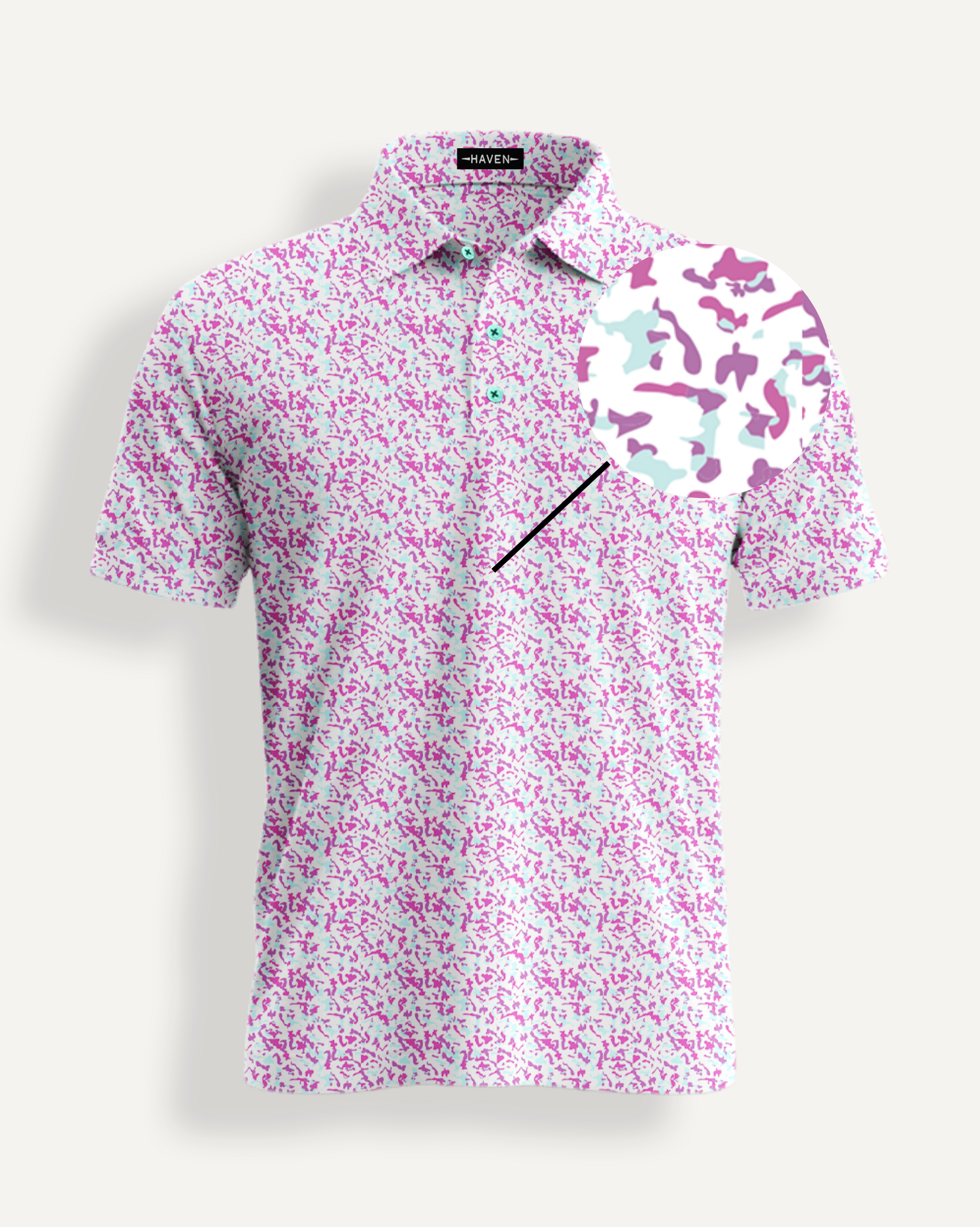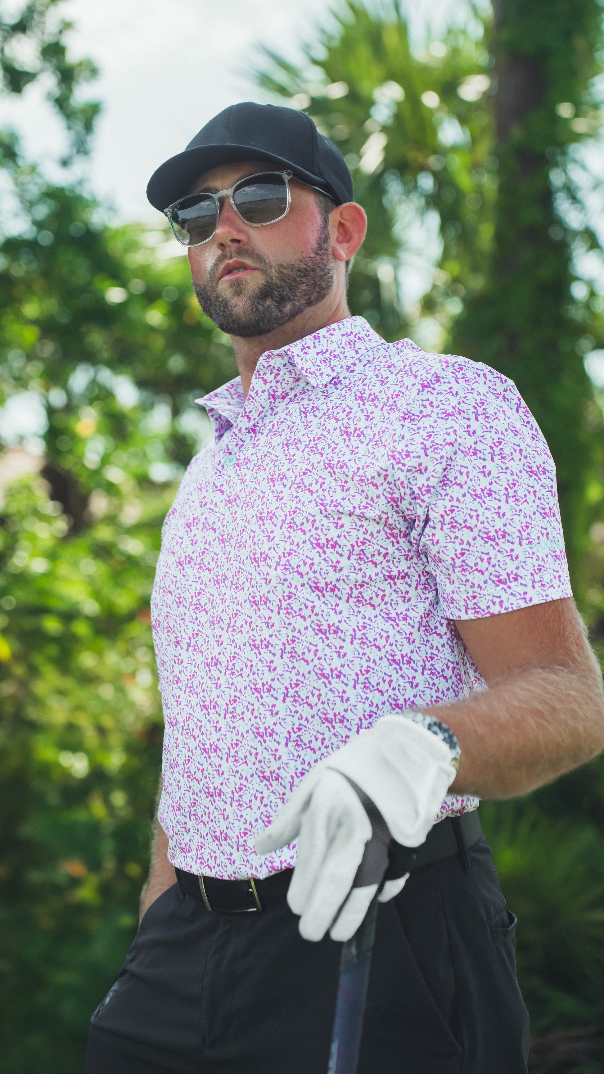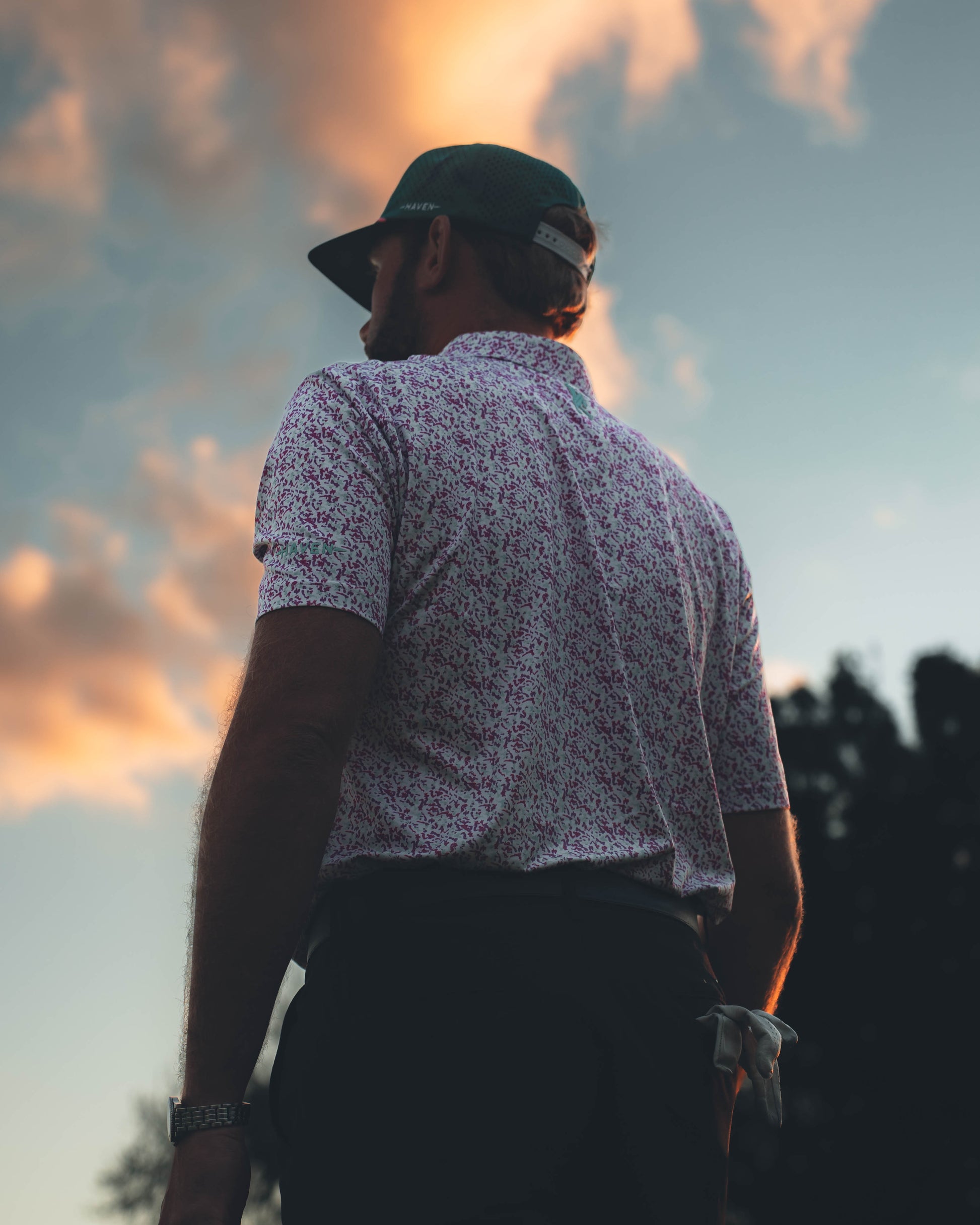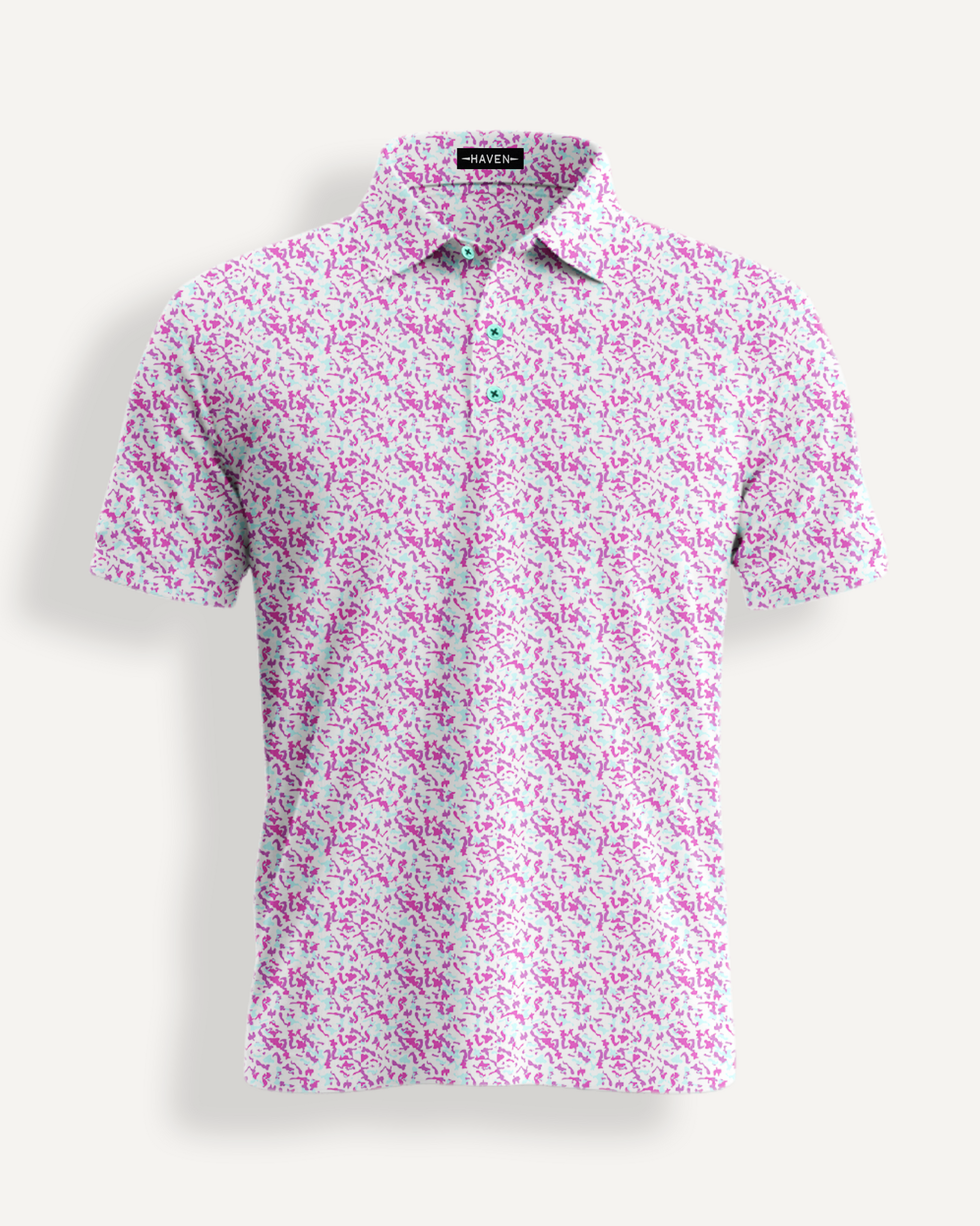 Haven Golf moisture wicking polos are the best fitting polos in the game. With a light weight four-way stretch and stiff collar, you can take this polo from the office to the course // and don't forget the 19th hole. The Gettin' Jiggy men’s performance polo can be worn tucked or untucked - whether you're at the local muni, or visiting your buddies dads country club, you're sure to fit in and stand out.
