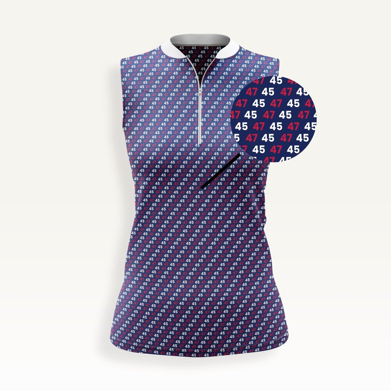 - Sleeveless design with zipper and soft collar.
