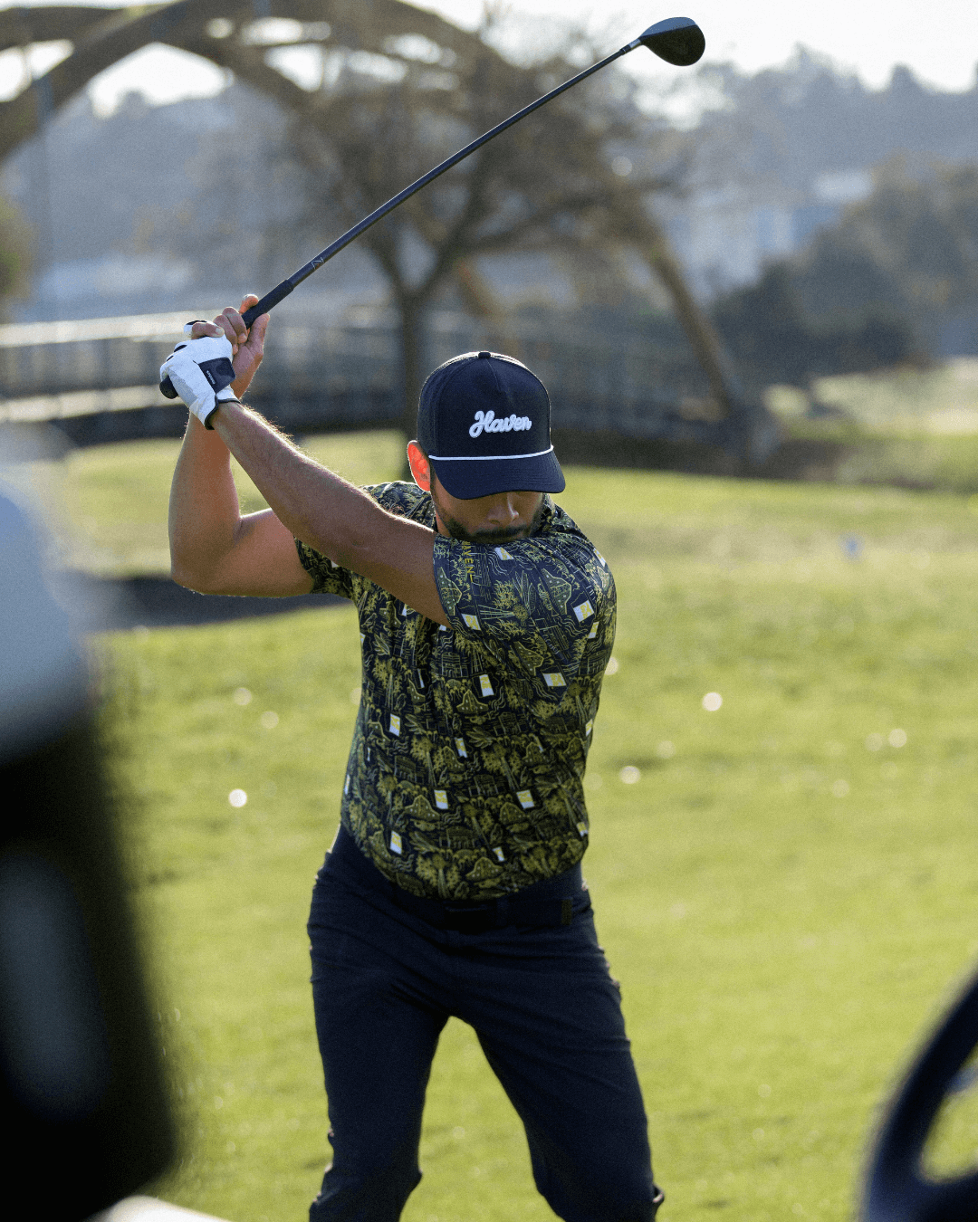 Complete with raised rubber Haven Golf wordmark on the sleeve and the Haven Golf logo on the back.